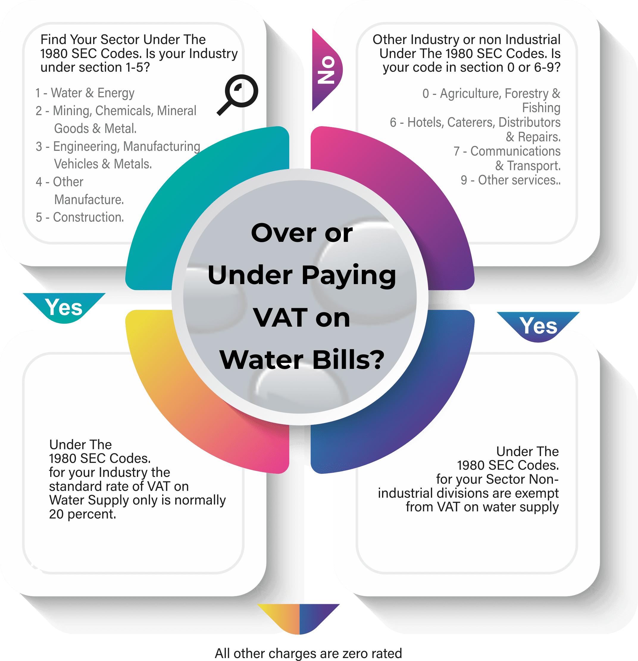 If you are categorised in Sections 1-5, you are obliged to pay VAT on the water supply element of your invoice.
